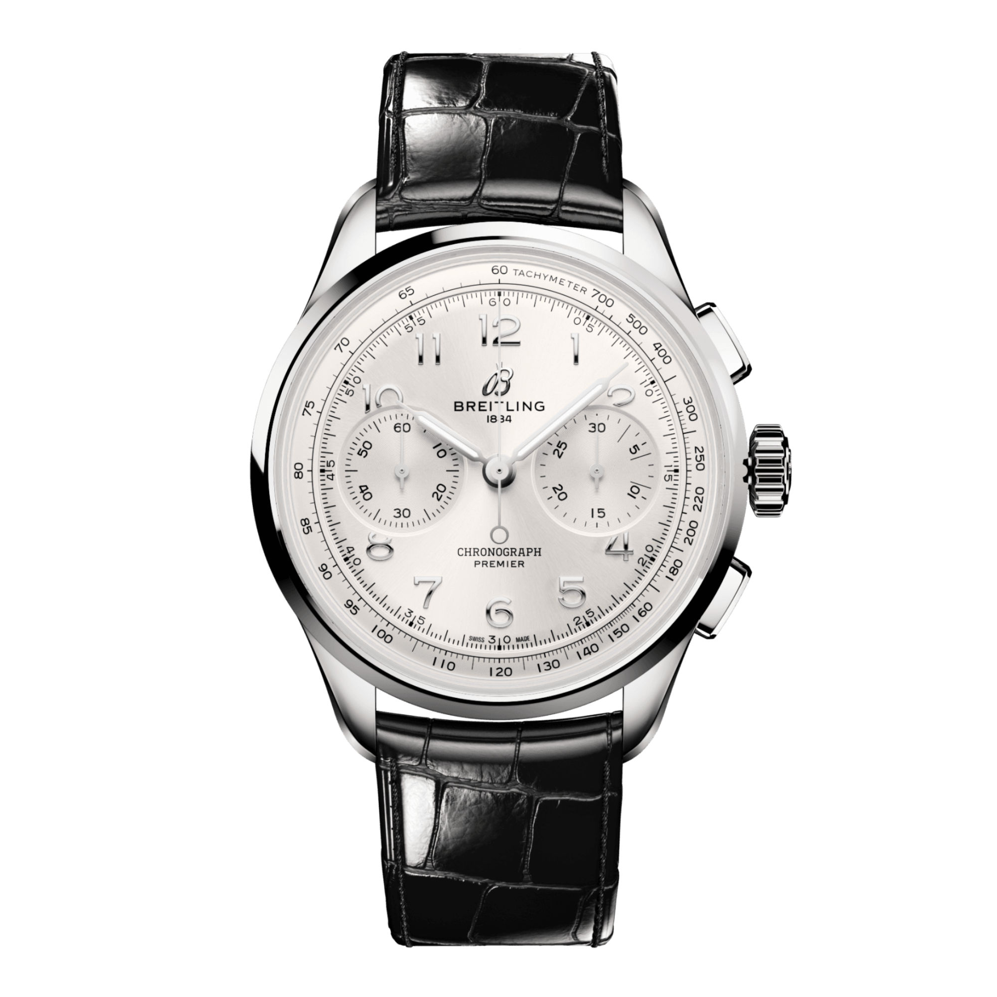 Ref. AB0930371G1P1 - Die Premier Chronograph, eine Hommage an drei Generationen von Erfindern um Léon, Gaston und Willy Breitling, verkörpert Breitlings Erbe als Schöpfer des modernen Chronographen. Nach Willy Breitlings Auffassung gibt die Premier «unweigerlich Zeugnis von tadellosem Geschmack».