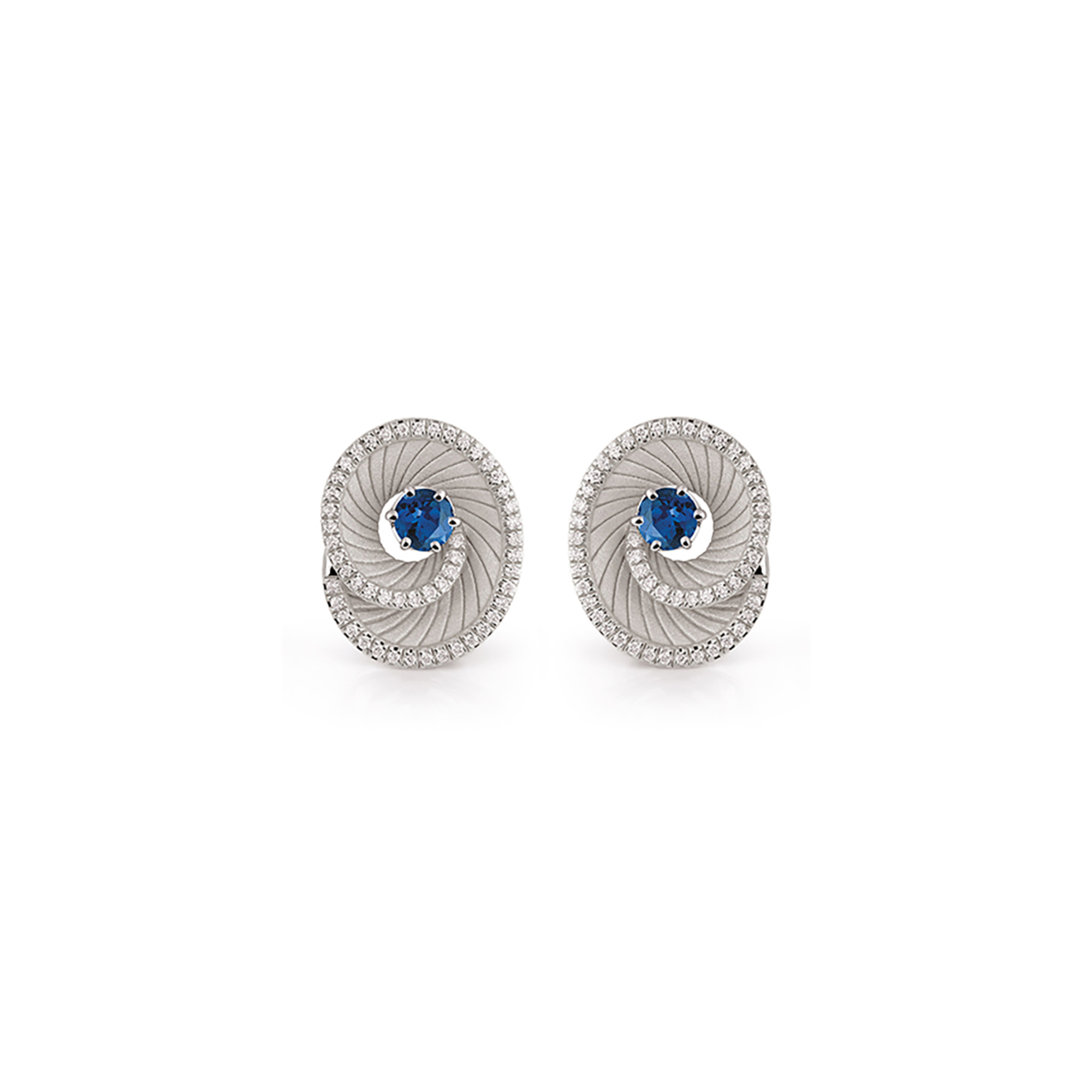 Ref. GOR3613WT45 - Eine majestätische Spirale aus Gold umhüllt einen leuchtenden Diamanten in einem hypnotischen Spiel aus skulpturalen Formen und Geometrien, hervorgehoben durch einen Diamantrand: So entsteht die Athena-Serie, ein Symbol für die Kraft der Weiblichkeit.