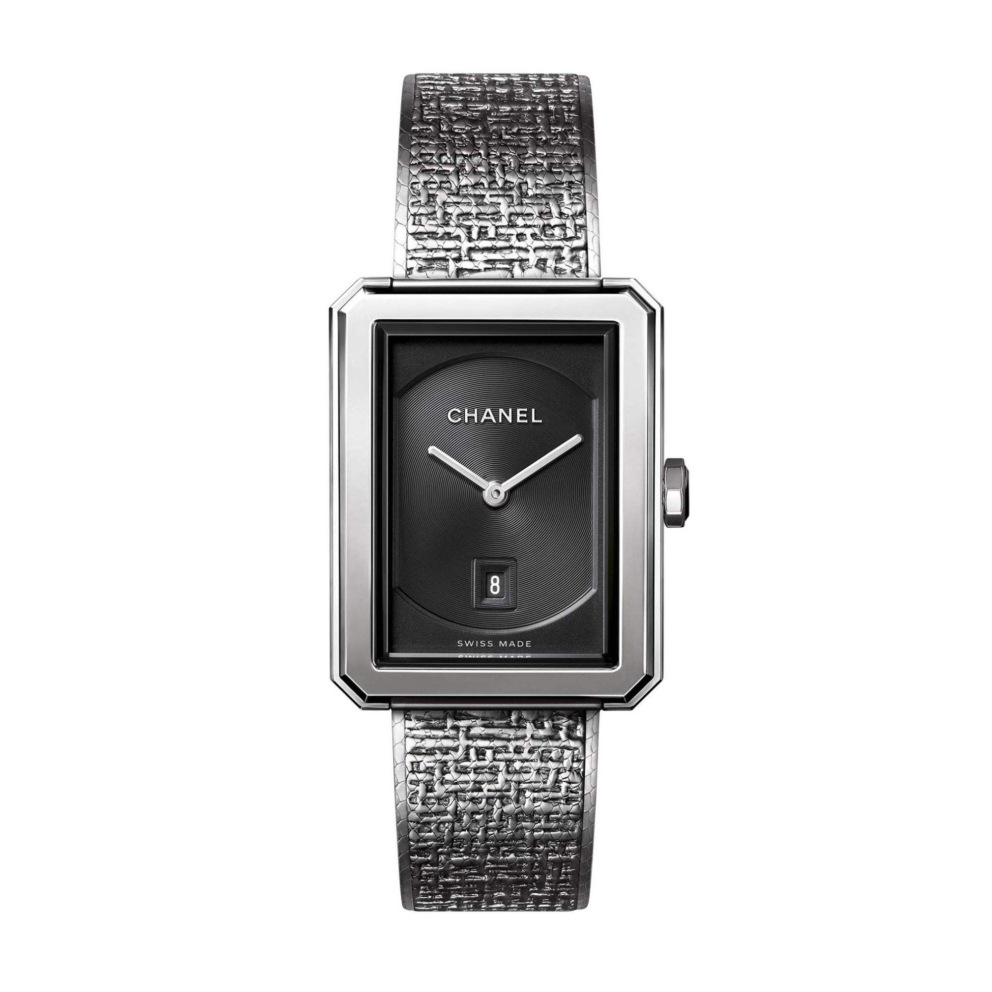 Milanaise Armband aus Edelstahl mit Tweedmuster und Faltschließe aus Edelstahl