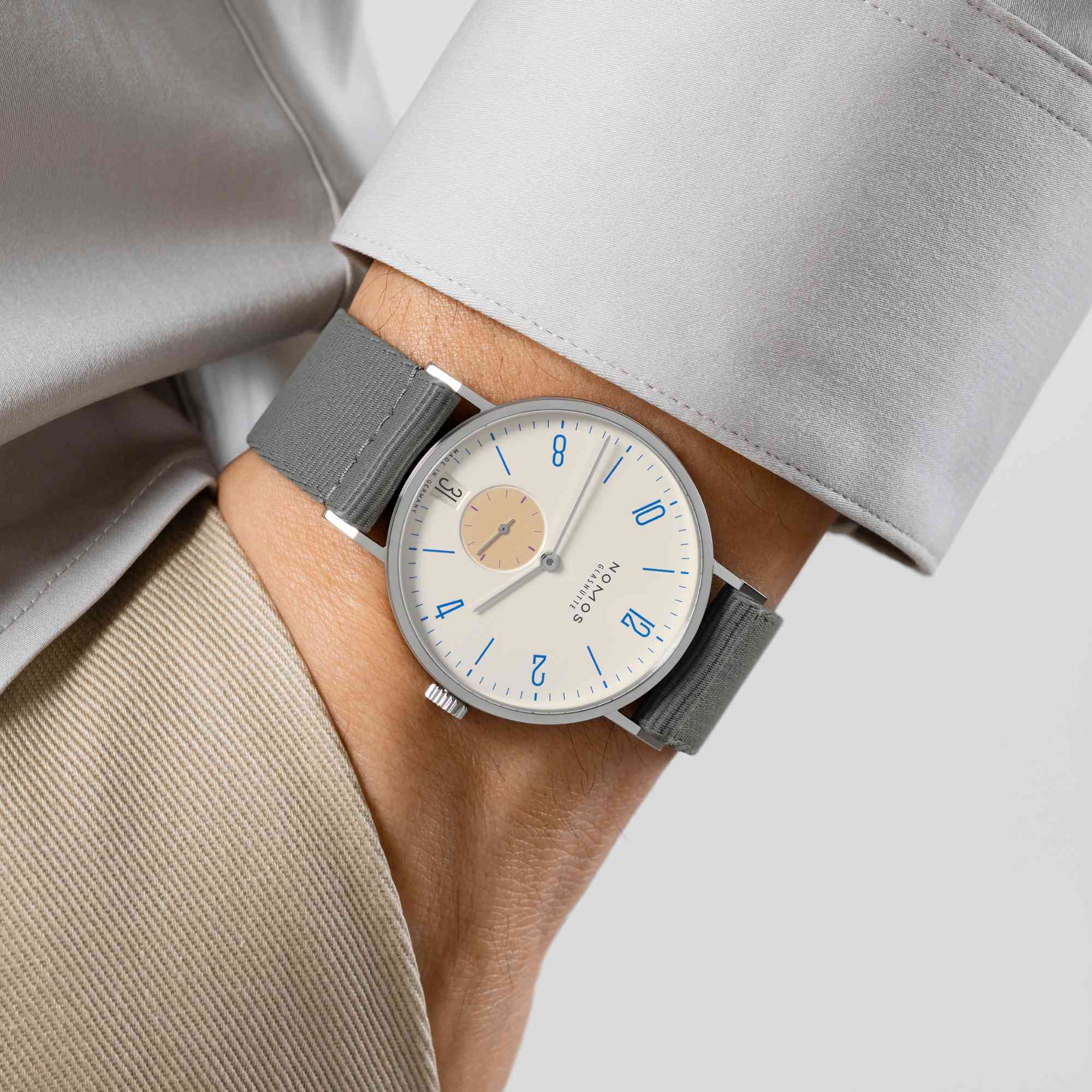 NOMOS Glashütte Tangente 38 Datum Schulhausweiß 179.S11