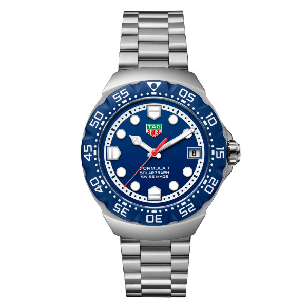 Ref. WBY1112.BA0042 - Inspiriert von der originalen Series 1 ergänzt die TAG Heuer Formula 1 Solargraph mit 38 mm Durchmesser die energiegeladene Ästhetik von damals um ein leuchtend blaues Zifferblatt und ein schlankes Design. Der solarbetriebene Zeitmesser kombiniert einen verspielten Look mit Funktionalität und wurde für Trendsetter gestaltet, die Wert auf Stil und Innovation legen.