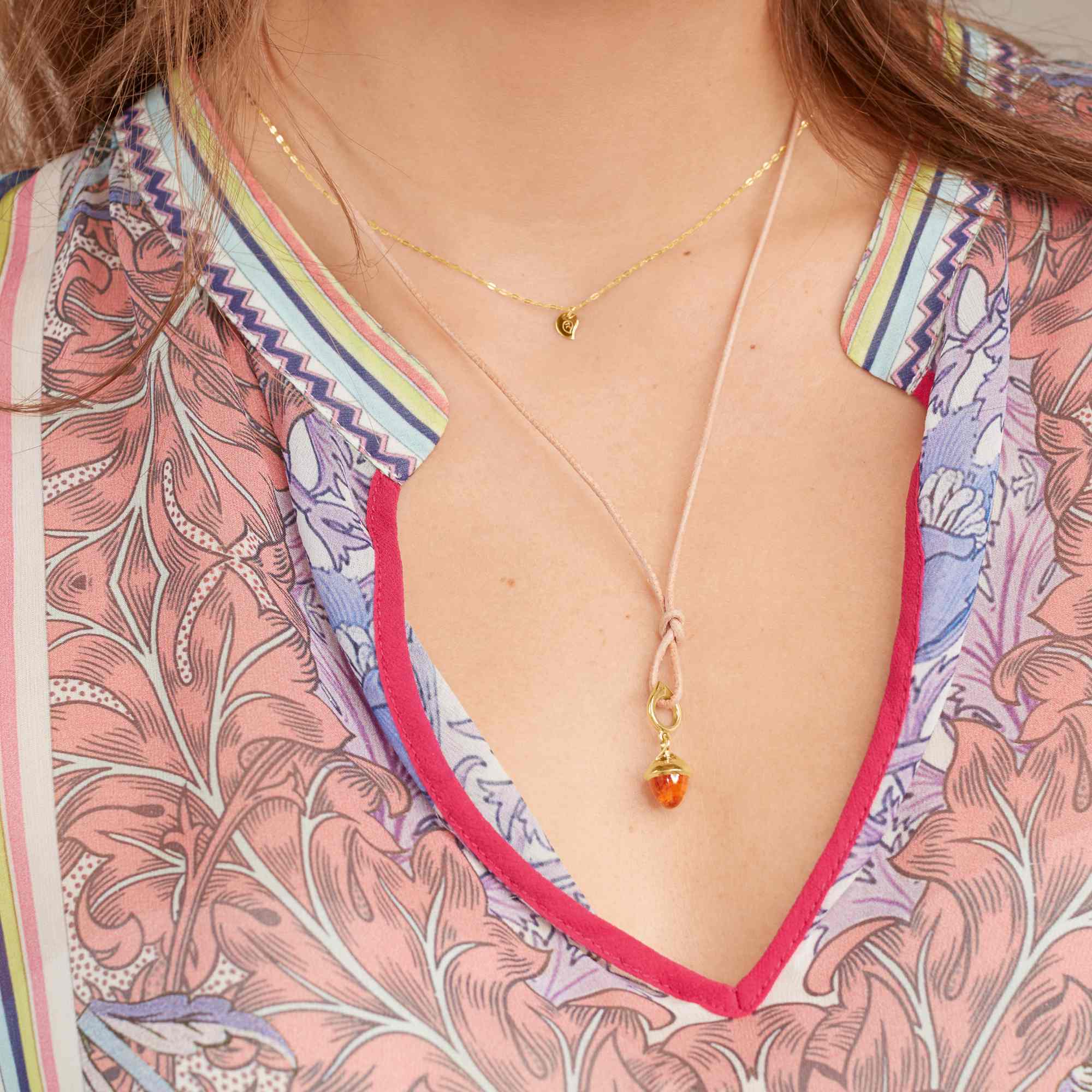 Ohne Kette, mit einem passenden Lederband