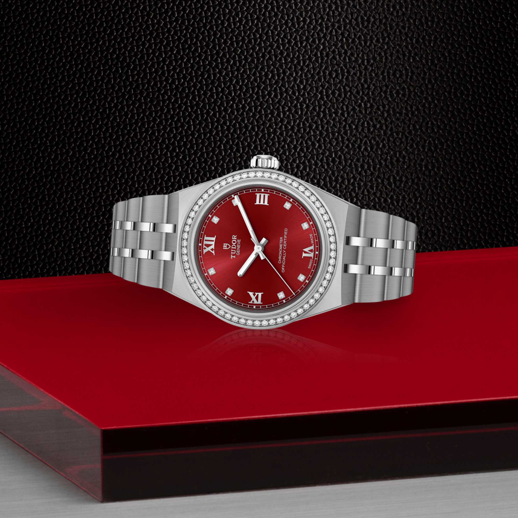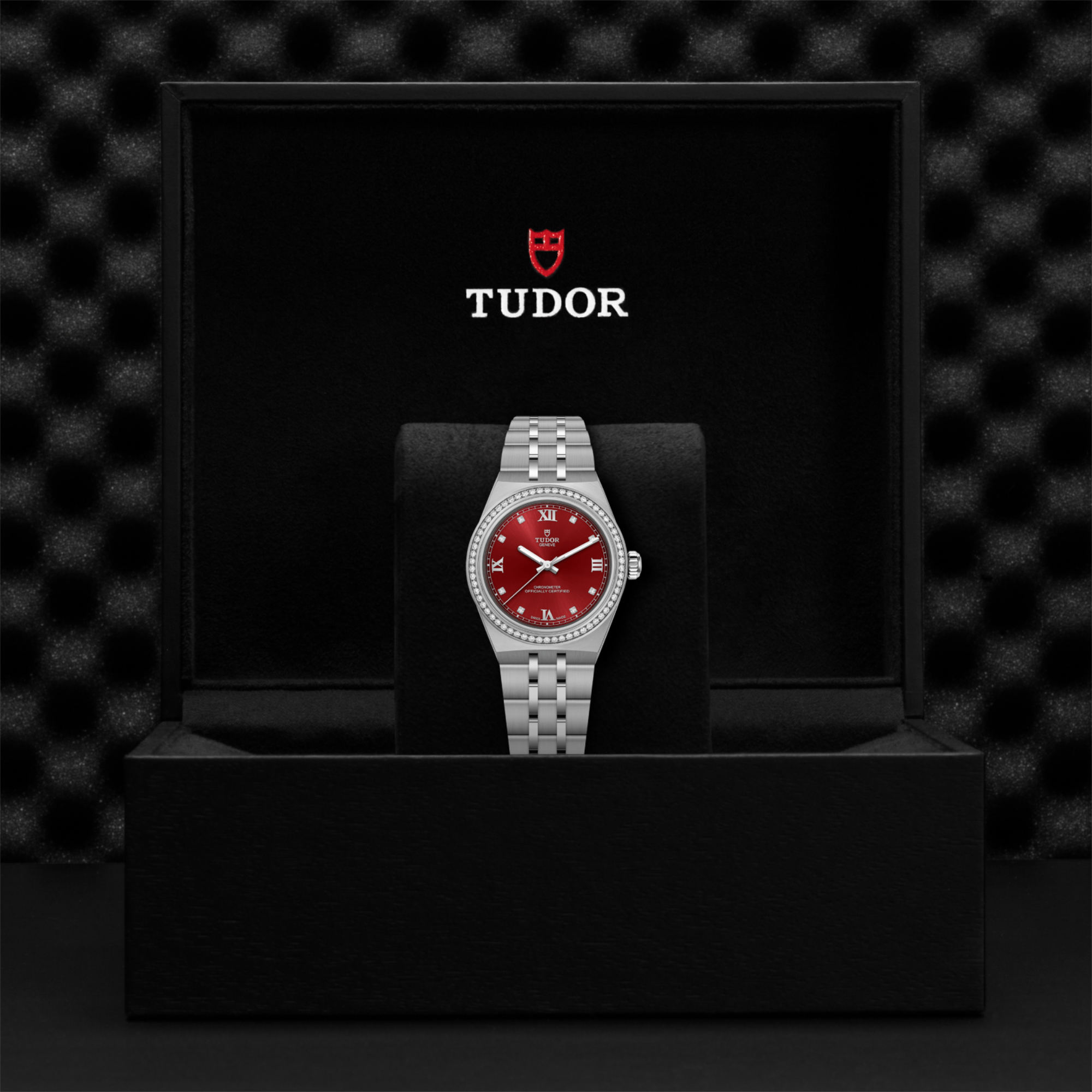 Ref. M2830A1S0-0002 - Mit ihrem integrierten Metallarmband, das nahtlos in das Gehäuse übergeht, zeichnet sich die TUDOR Royal durch ein fließendes und stilsicheres Design aus. Charakterisiert durch ihre drei breiten satinierten Bandelemente, zwischen denen zwei schmalere polierte Elemente positioniert sind, und ihre „T-fit“-Schließe, betont die glatte Beschaffenheit ihrer Oberflächen die große Aufmerksamkeit, die TUDOR dem Tragekomfort schenkt. Erhältlich in Edelstahl oder mit abwechselnden Elementen in Edelstahl und Gelbgold, sprechen die Modelle dieser Linie mit ihrer fein bearbeiteten Oberfläche jeden Geschmack an.