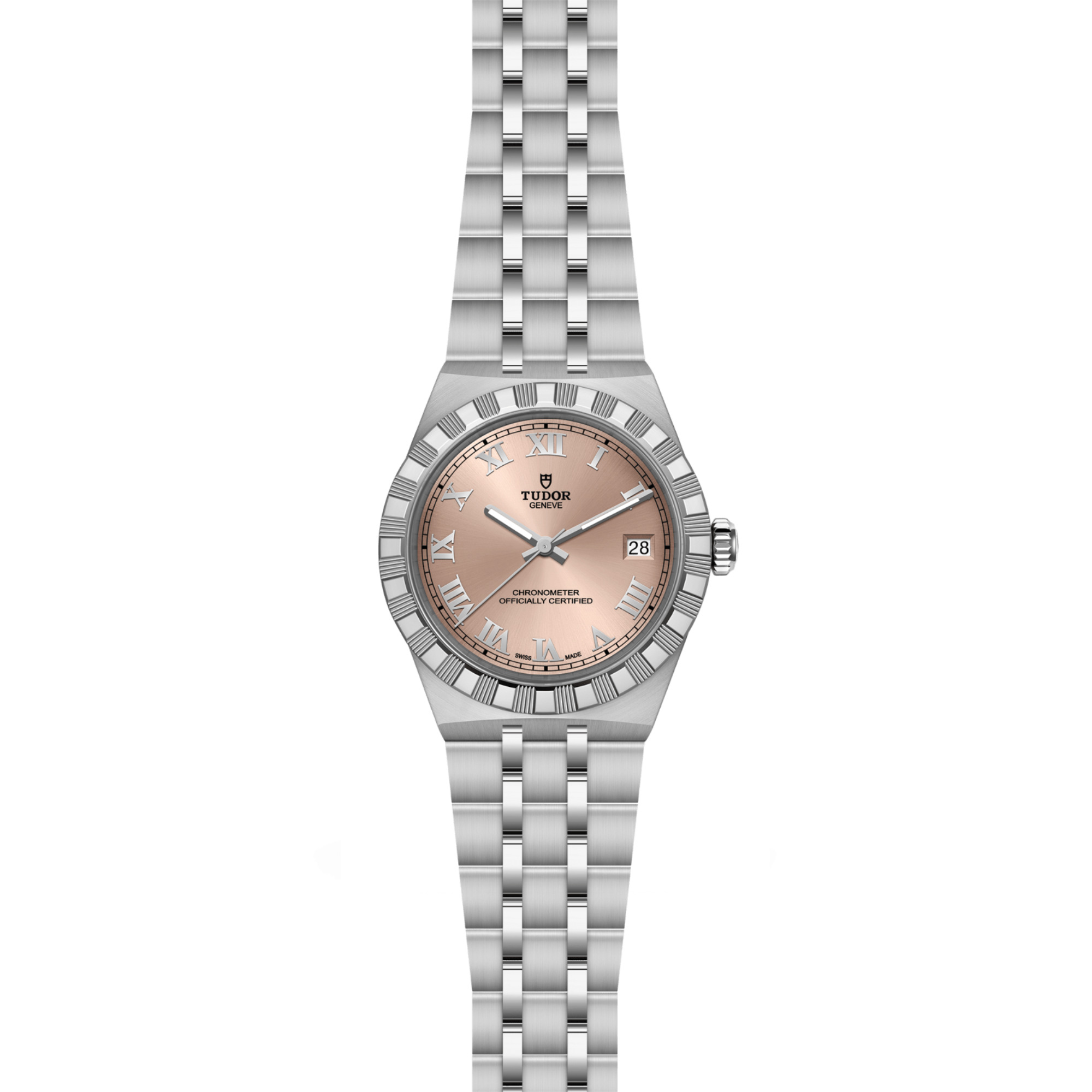 Ref. M2836C1A0-0105 - Mit ihrem integrierten Metallarmband, das nahtlos in das Gehäuse übergeht, zeichnet sich die TUDOR Royal durch ein fließendes und stilsicheres Design aus. Charakterisiert durch ihre drei breiten satinierten Bandelemente, zwischen denen zwei schmalere polierte Elemente positioniert sind, und ihre „T-fit“-Schließe, betont die glatte Beschaffenheit ihrer Oberflächen die große Aufmerksamkeit, die TUDOR dem Tragekomfort schenkt. Erhältlich in Edelstahl oder mit abwechselnden Elementen in Edelstahl und Gelbgold, sprechen die Modelle dieser Linie mit ihrer fein bearbeiteten Oberfläche jeden Geschmack an.