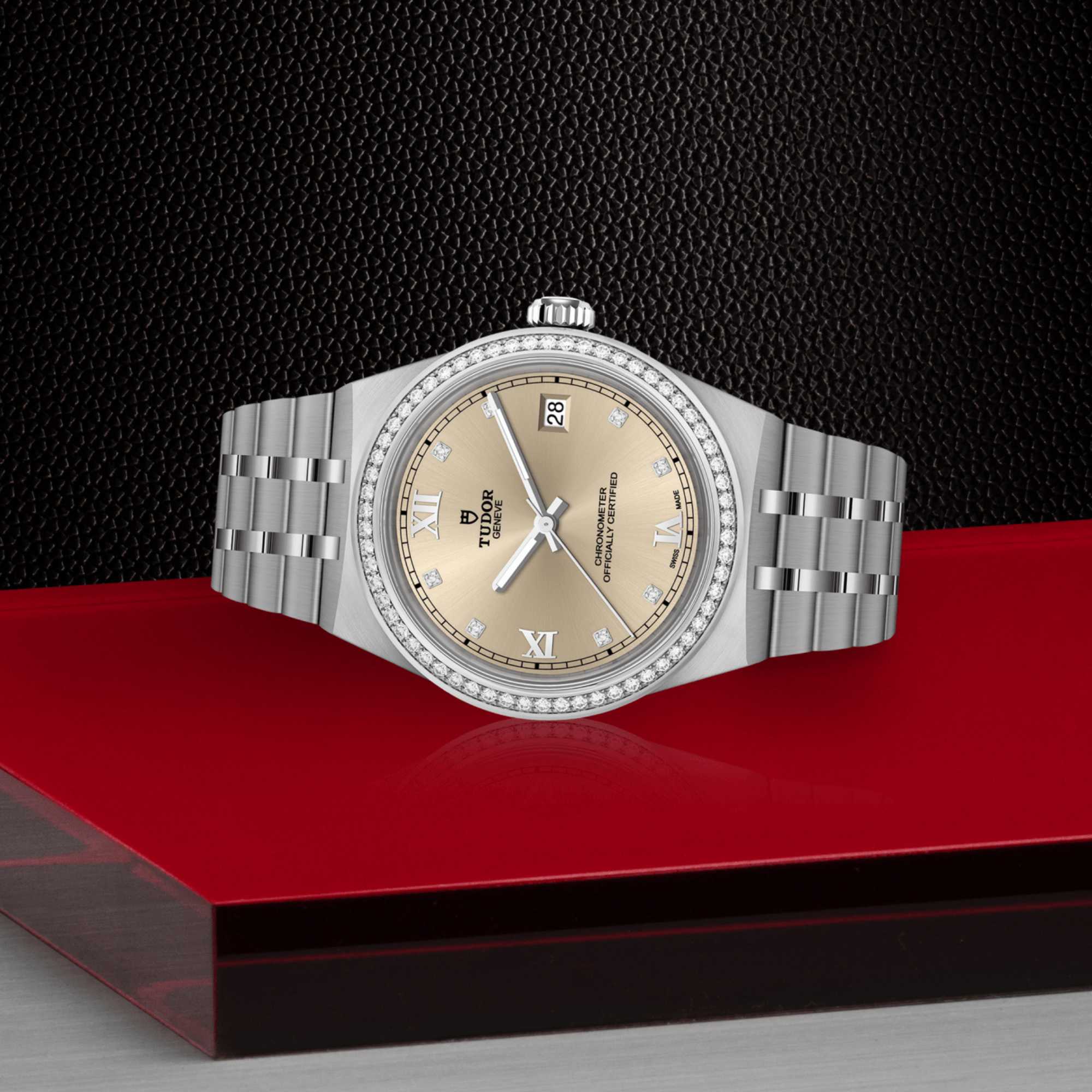 Ref. M2836C1S0-0001 - Mit ihrem integrierten Metallarmband, das nahtlos in das Gehäuse übergeht, zeichnet sich die TUDOR Royal durch ein fließendes und stilsicheres Design aus. Charakterisiert durch ihre drei breiten satinierten Bandelemente, zwischen denen zwei schmalere polierte Elemente positioniert sind, und ihre „T-fit“-Schließe, betont die glatte Beschaffenheit ihrer Oberflächen die große Aufmerksamkeit, die TUDOR dem Tragekomfort schenkt. Erhältlich in Edelstahl oder mit abwechselnden Elementen in Edelstahl und Gelbgold, sprechen die Modelle dieser Linie mit ihrer fein bearbeiteten Oberfläche jeden Geschmack an.