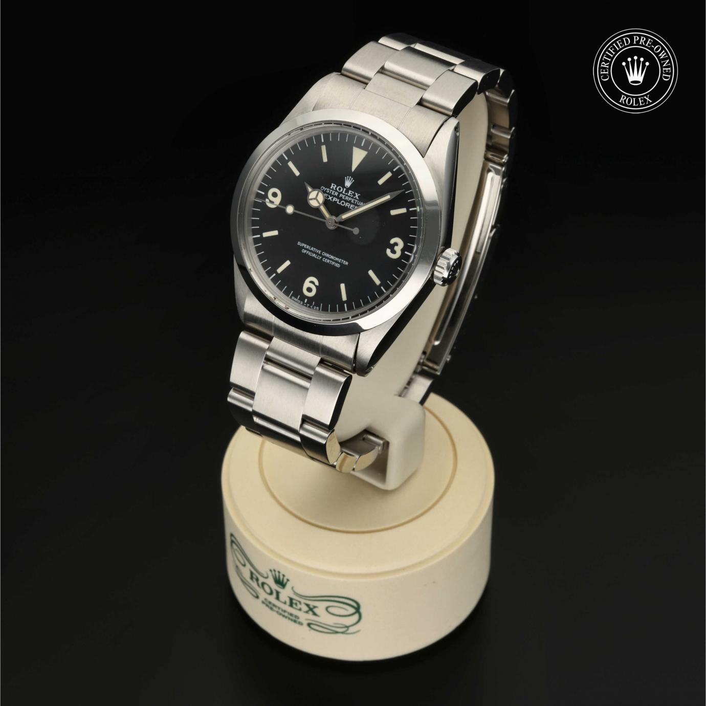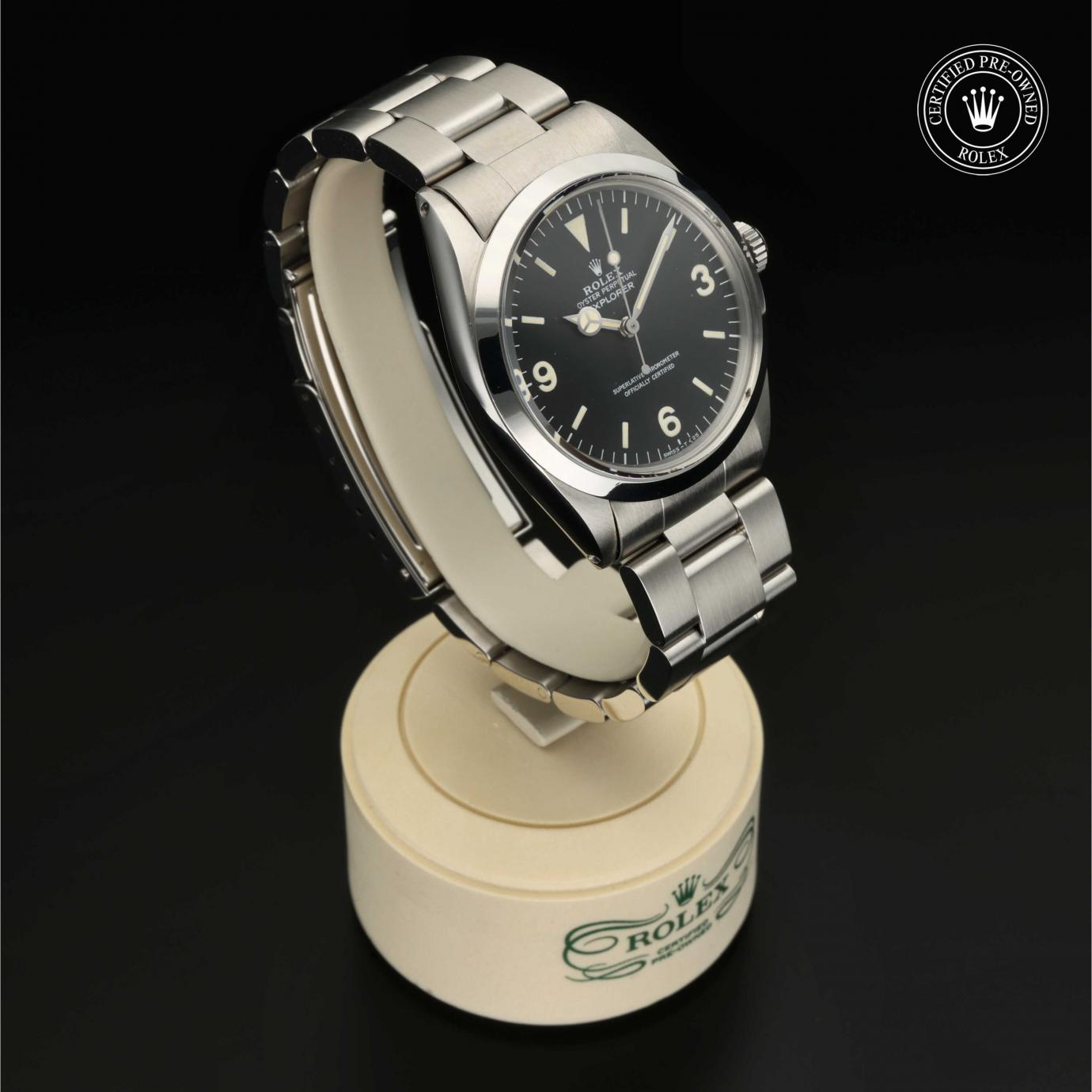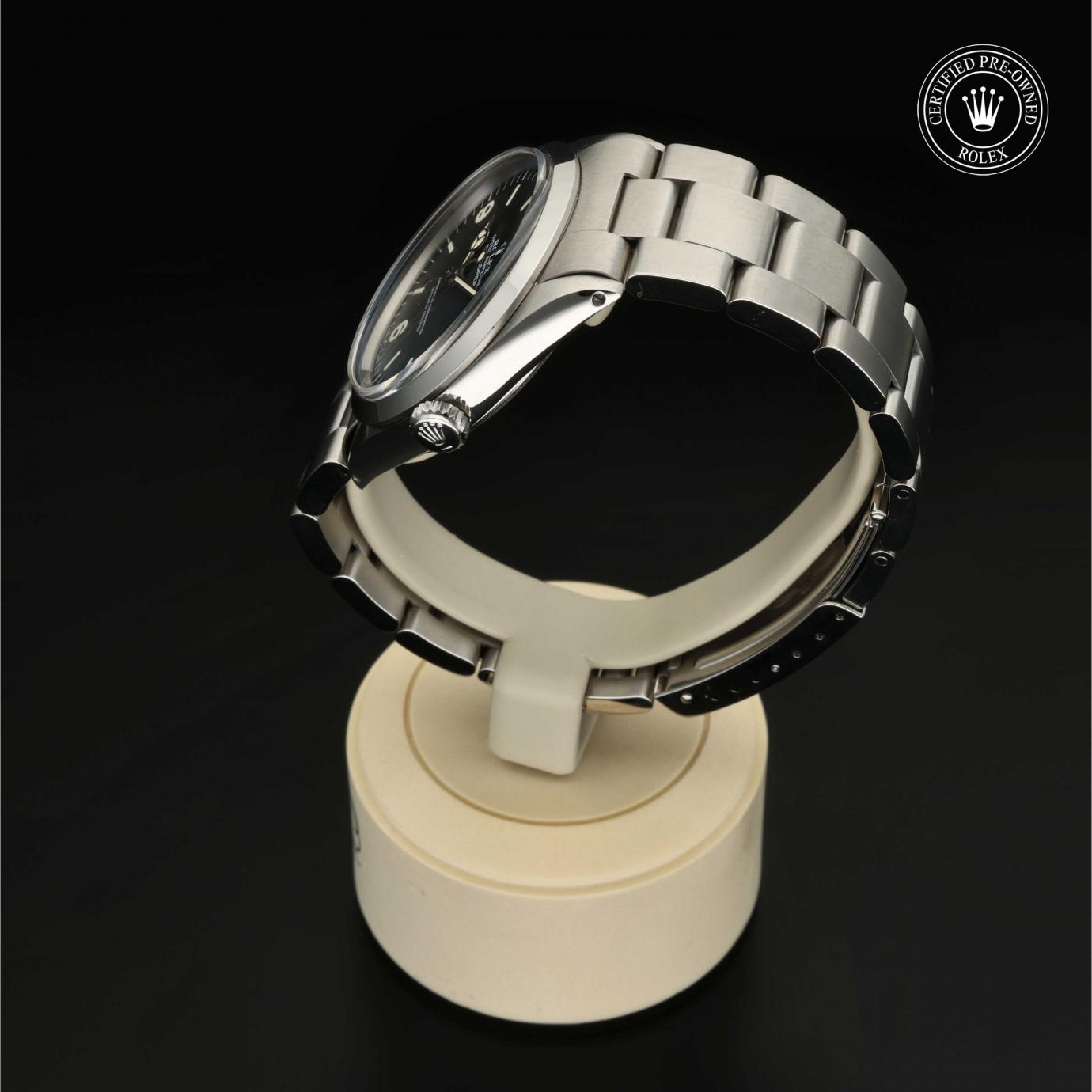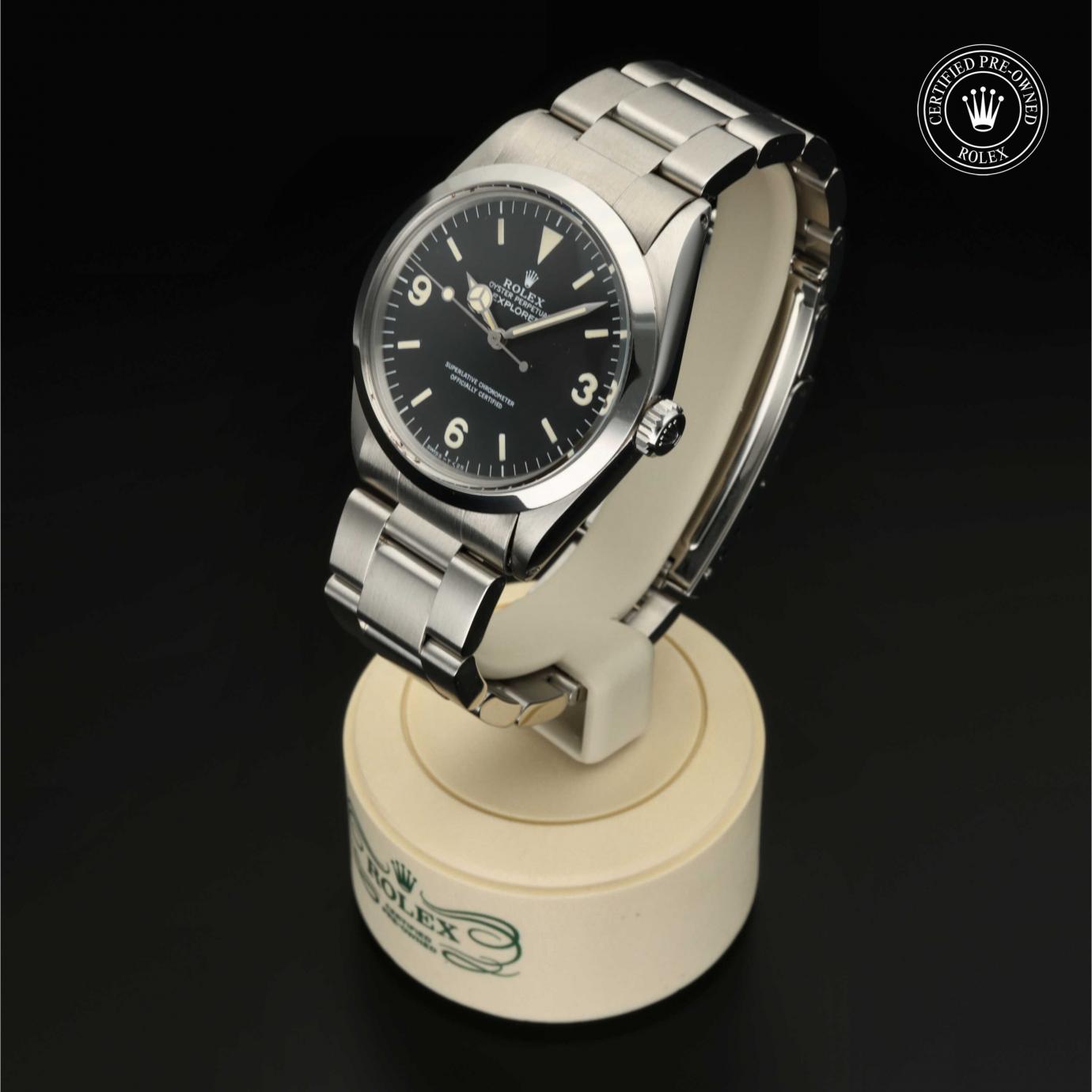 Sie besticht durch ein schwarzes Zifferblatt mit großen Indizes sowie den für das Modell typischen Ziffern 3, 6 und 9. Die Explorer zeichnet sich durch ihre Zuverlässigkeit und gute Ablesbarkeit unter allen Umständen aus und ist eine der ersten Rolex Funktionsuhren.