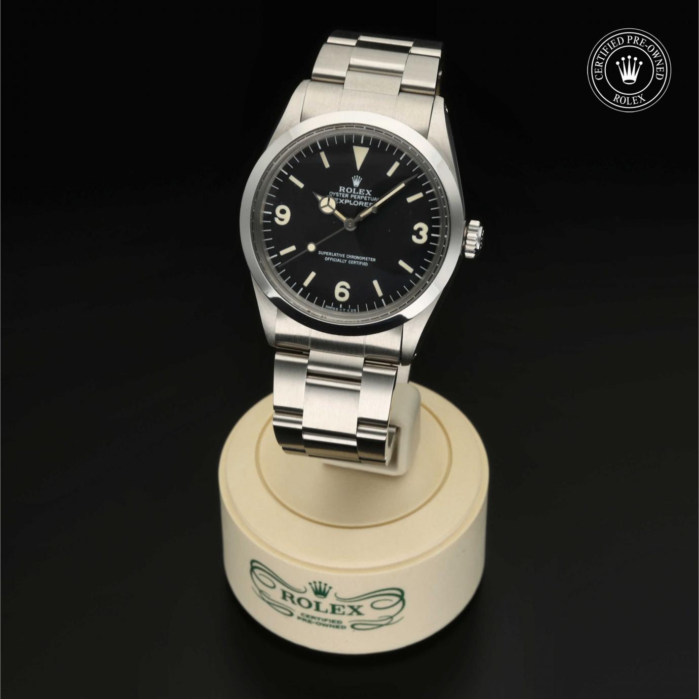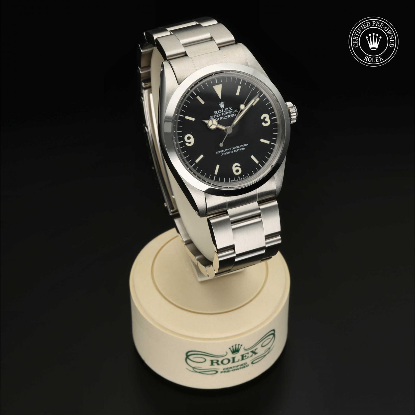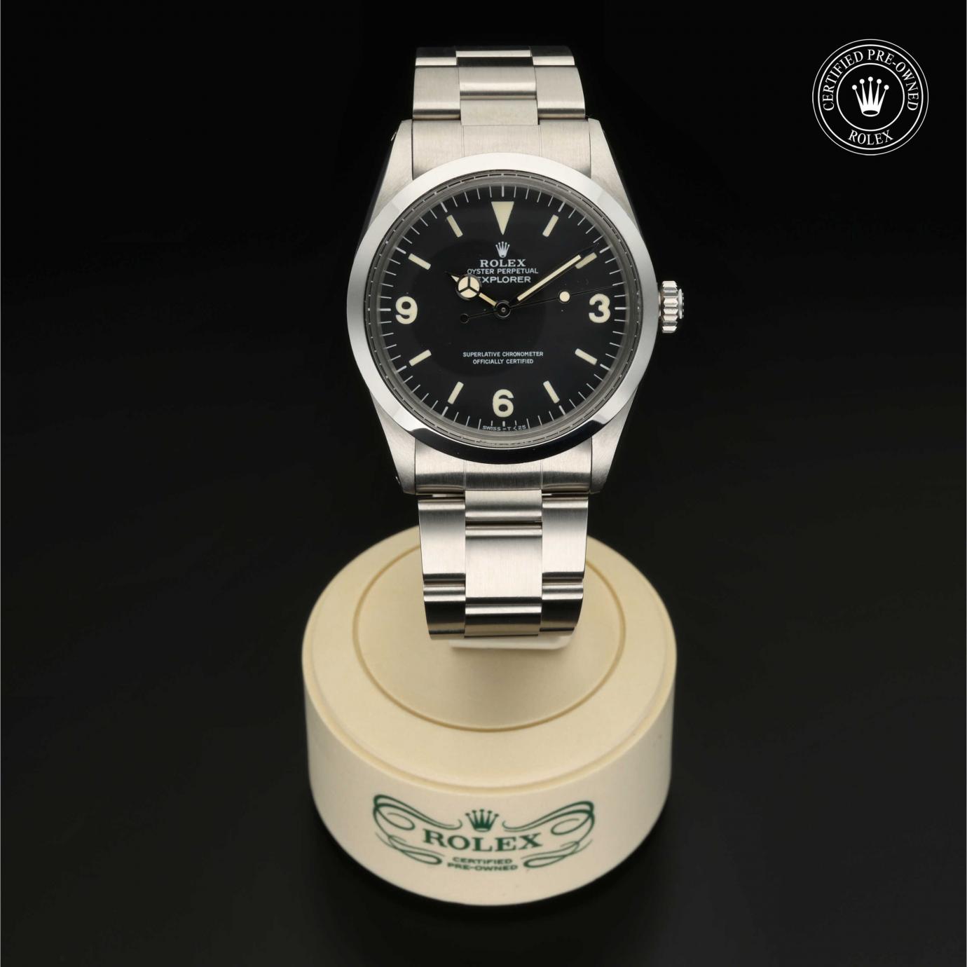 Sie besticht durch ein schwarzes Zifferblatt mit großen Indizes sowie den für das Modell typischen Ziffern 3, 6 und 9. Die Explorer zeichnet sich durch ihre Zuverlässigkeit und gute Ablesbarkeit unter allen Umständen aus und ist eine der ersten Rolex Funktionsuhren.
