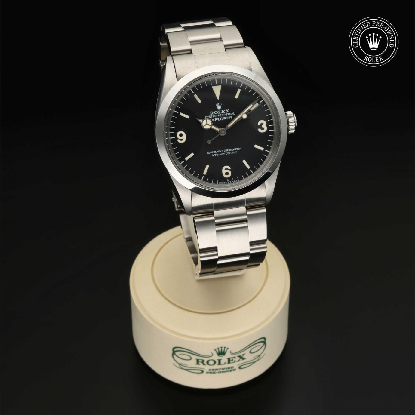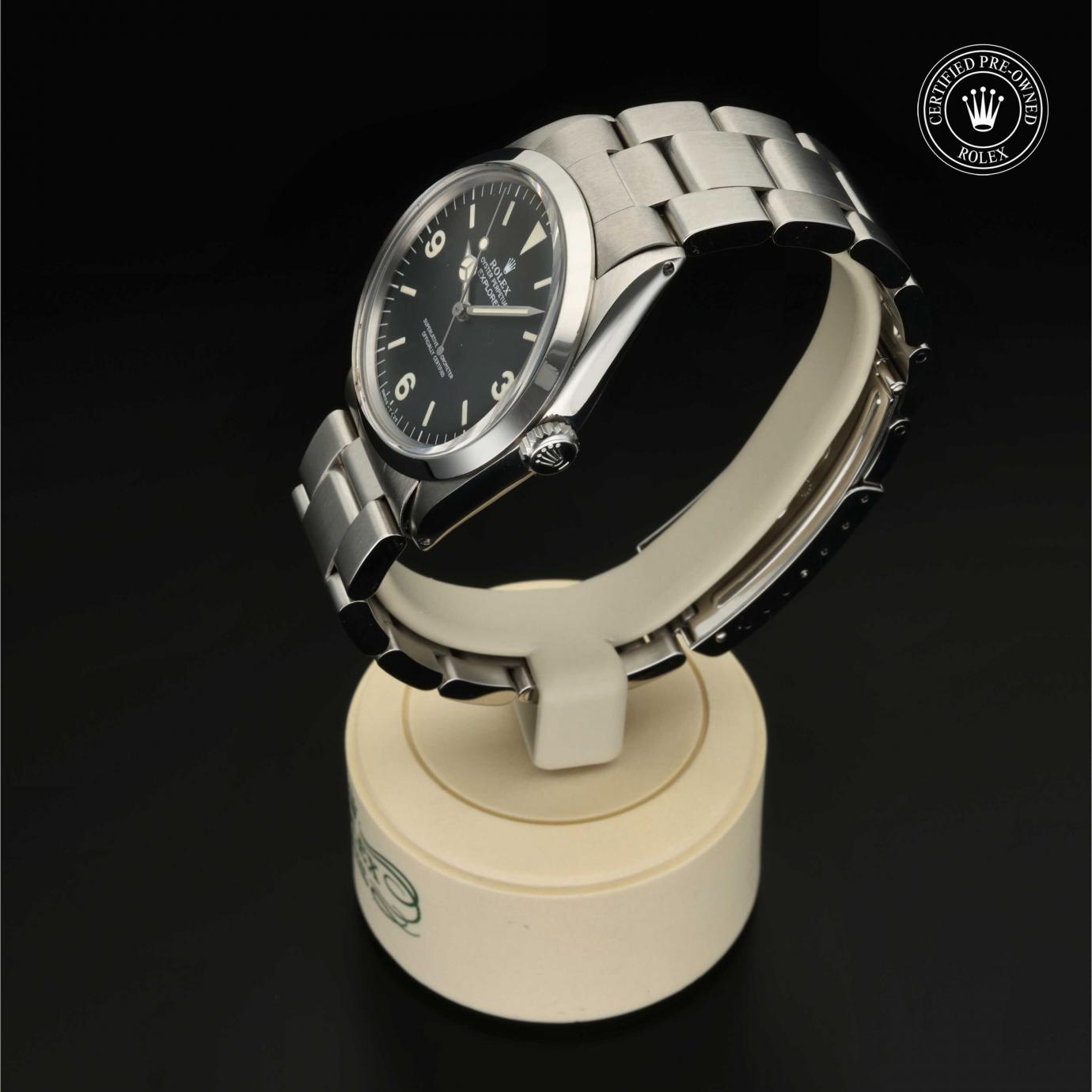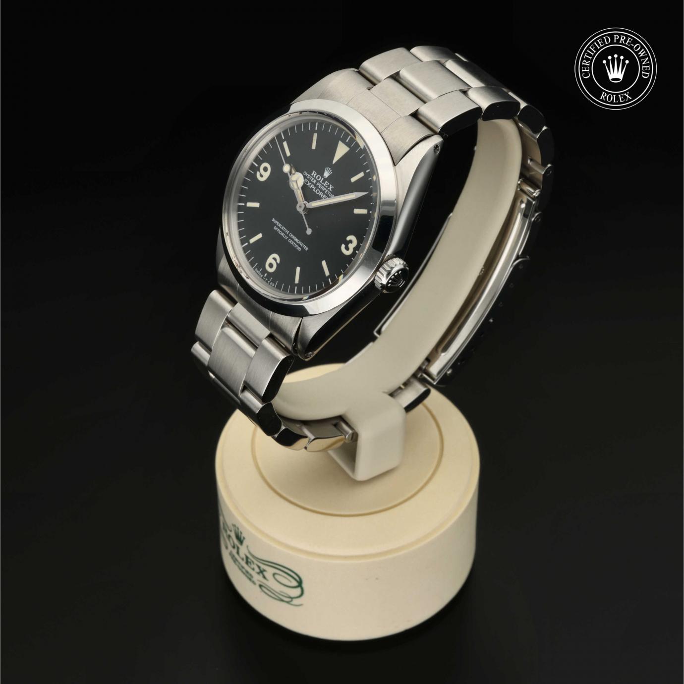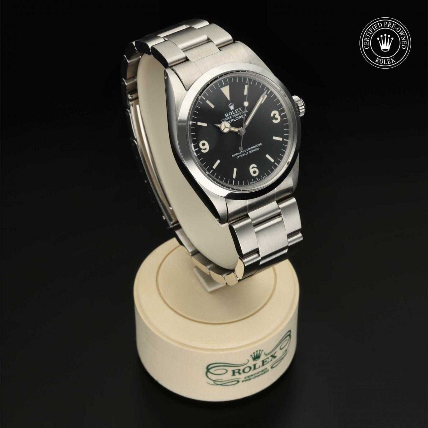 Sie besticht durch ein schwarzes Zifferblatt mit großen Indizes sowie den für das Modell typischen Ziffern 3, 6 und 9. Die Explorer zeichnet sich durch ihre Zuverlässigkeit und gute Ablesbarkeit unter allen Umständen aus und ist eine der ersten Rolex Funktionsuhren.