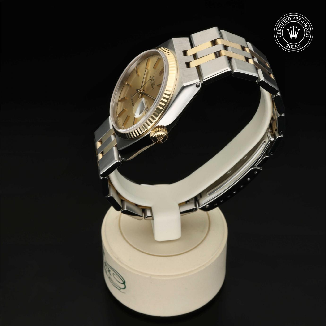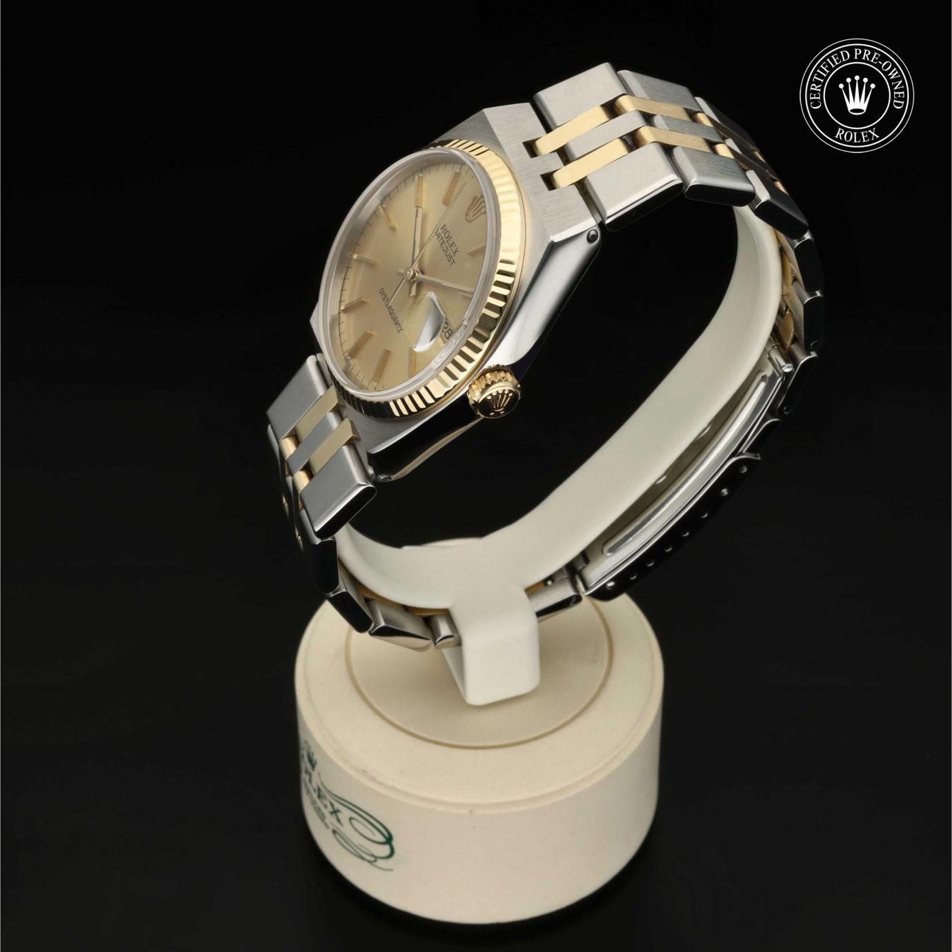 Bei ihrer Einführung im Jahr 1945 war sie das erste automatische und wasserdichte Armbandchronometer, das in einem Sichtfenster auf der 3‑Uhr-Position des Zifferblattes das Datum angibt.Die Datejust ist erhältlich in Edelstahl Oystersteel, als Version in Edelstahl Oystersteel und Gelb-, Weiß- oder Everose-Gold sowie als vollständig in 18 Karat Gold gefertigte Version mit einer großen Auswahl an Zifferblättern, Lünetten und Armbändern. Sie ist ebenfalls in Ausführungen mit Edelsteinbesatz erhältlich.