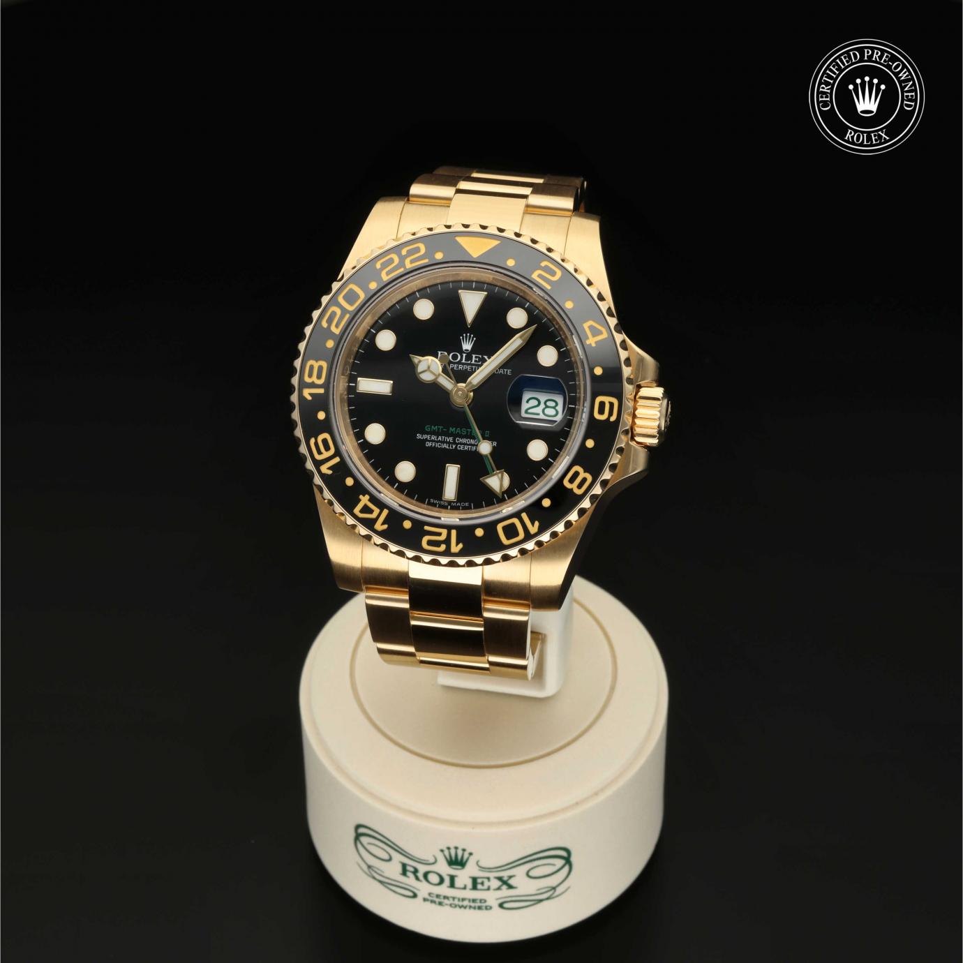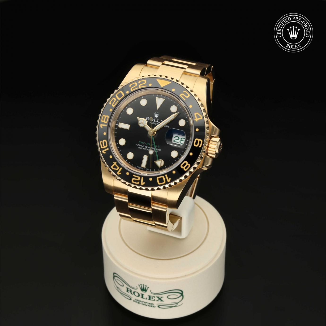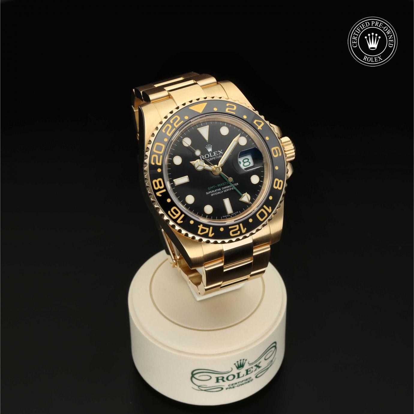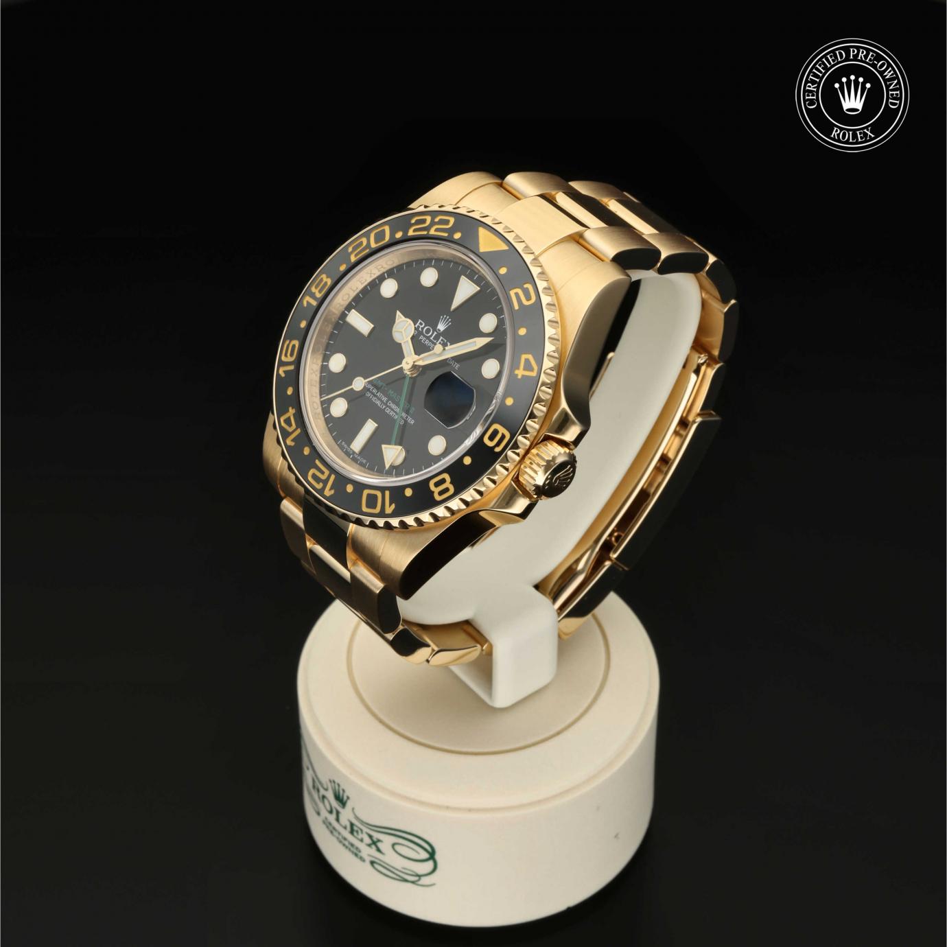 Das 1982 vorgestellte Modell verfügt über die legendäre zweifarbige Zahlenscheibe, die heutzutage aus Hightech-Keramik besteht, und zeigt gleichzeitig die Uhrzeit von zwei Zeitzonen an. Sie trat die unmittelbare Nachfolge der originalen GMT‑Master von 1955 an, die rasch von Transatlantik-Piloten als Navigationshilfe eingesetzt wurde.