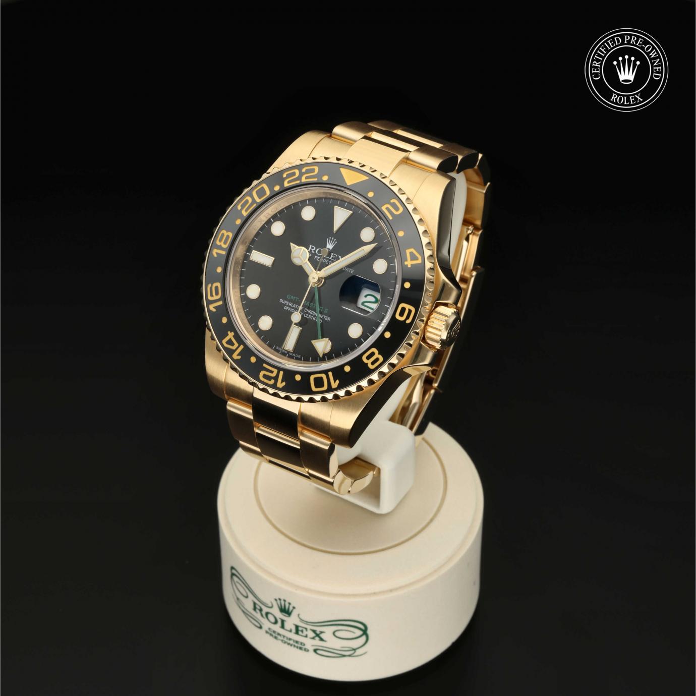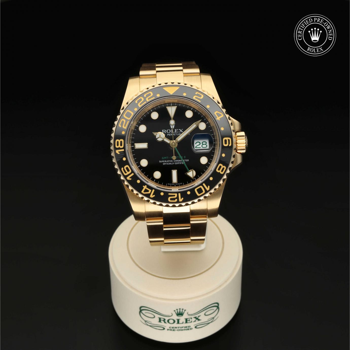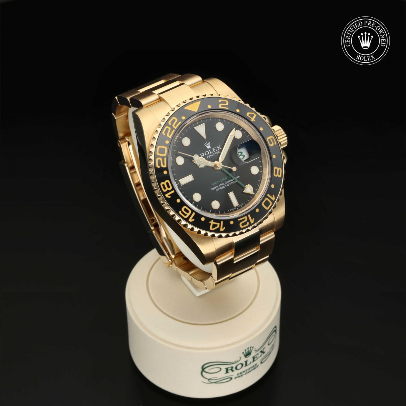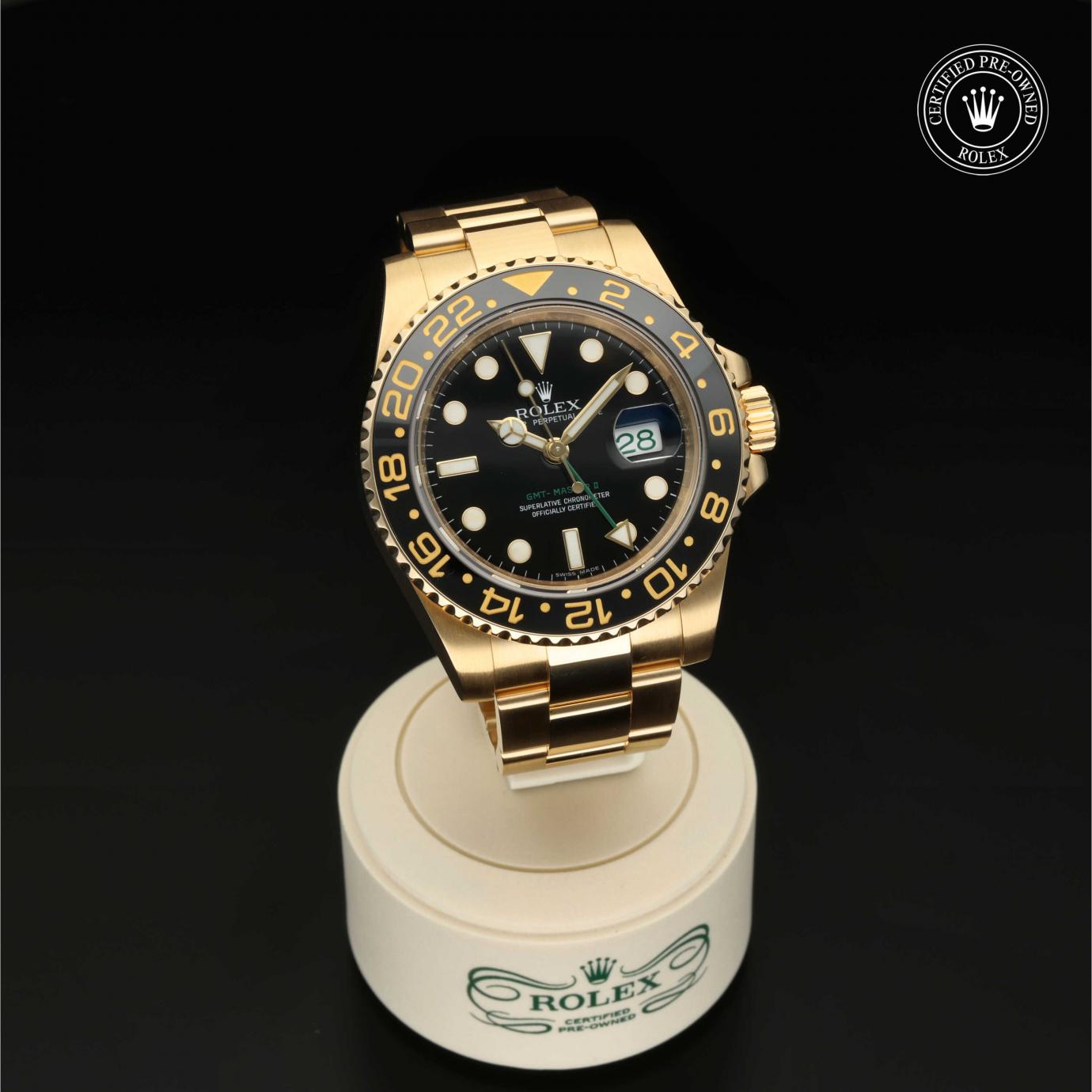 Das 1982 vorgestellte Modell verfügt über die legendäre zweifarbige Zahlenscheibe, die heutzutage aus Hightech-Keramik besteht, und zeigt gleichzeitig die Uhrzeit von zwei Zeitzonen an. Sie trat die unmittelbare Nachfolge der originalen GMT‑Master von 1955 an, die rasch von Transatlantik-Piloten als Navigationshilfe eingesetzt wurde.