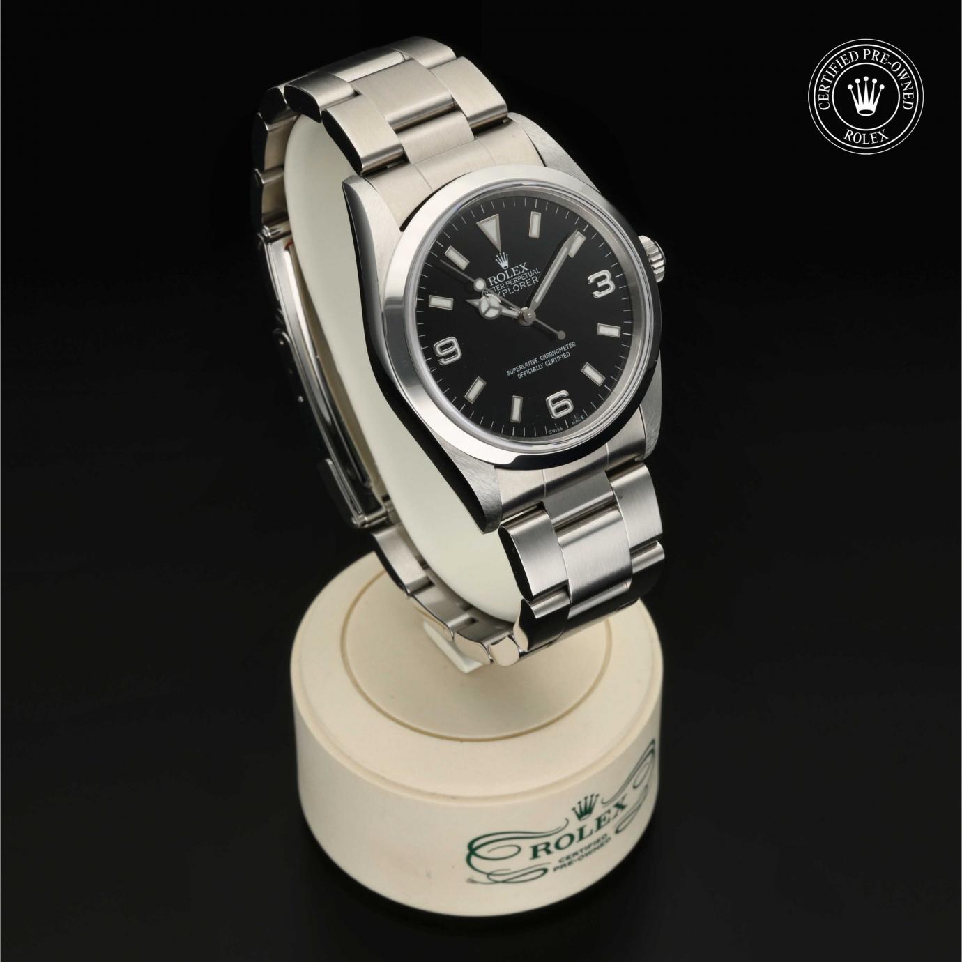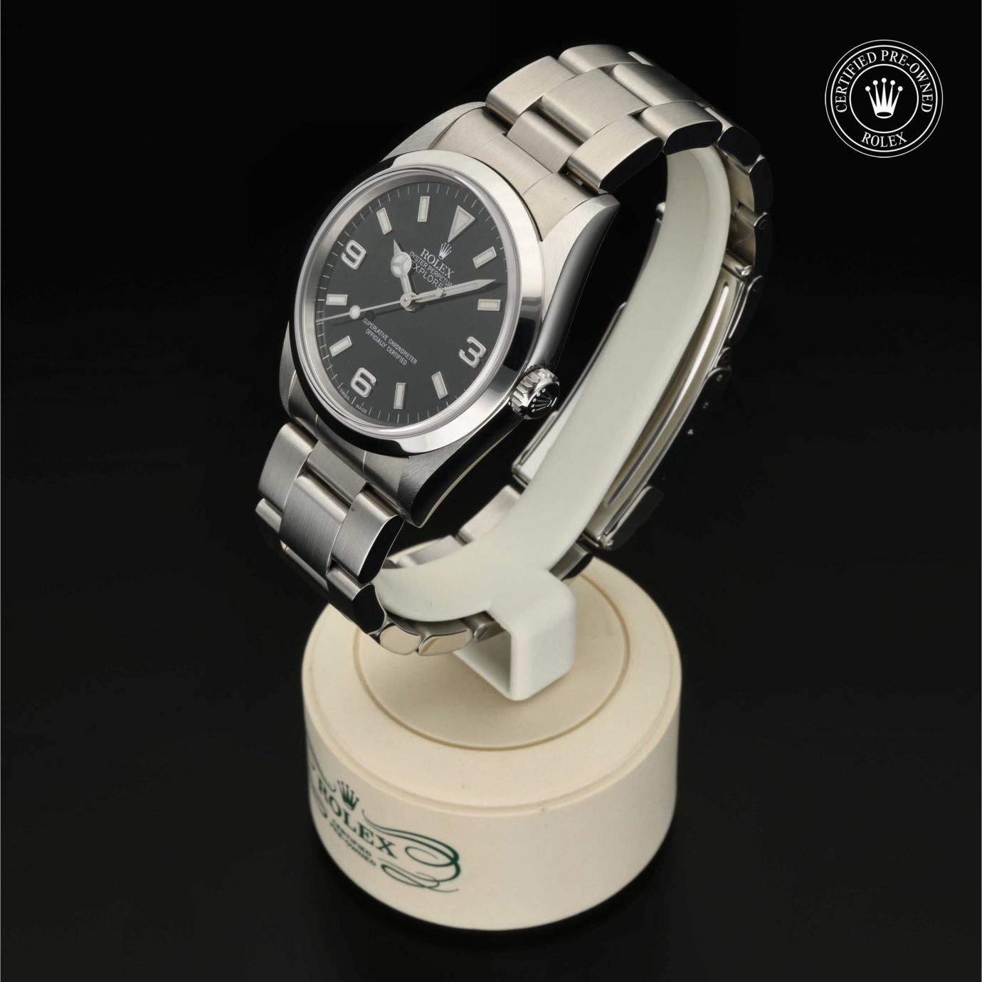 Sie besticht durch ein schwarzes Zifferblatt mit großen Indizes sowie den für das Modell typischen Ziffern 3, 6 und 9. Die Explorer zeichnet sich durch ihre Zuverlässigkeit und gute Ablesbarkeit unter allen Umständen aus und ist eine der ersten Rolex Funktionsuhren.